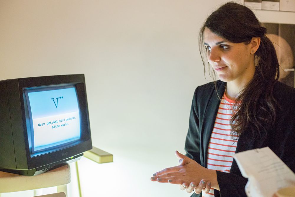 Installation zur Zubereitung von Mischgetränkenmärz 2016INSTALLATIONkonzept, programmierung, gestaltung, umsetzungDer Mischgetränkedrucker gibt einen neunschrittigen Prozess zum Zusammenstellen von Mischgetränken vor.