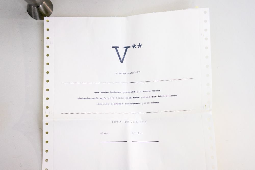 §4.2 Rechtsseitig vom Konsumenten.§5 Nur der diensthabende Barkeeper ist befugt, dem Rezept durch das Völlig Ohne-Siegel (V**) seine Gültigkeit zu verleihen.