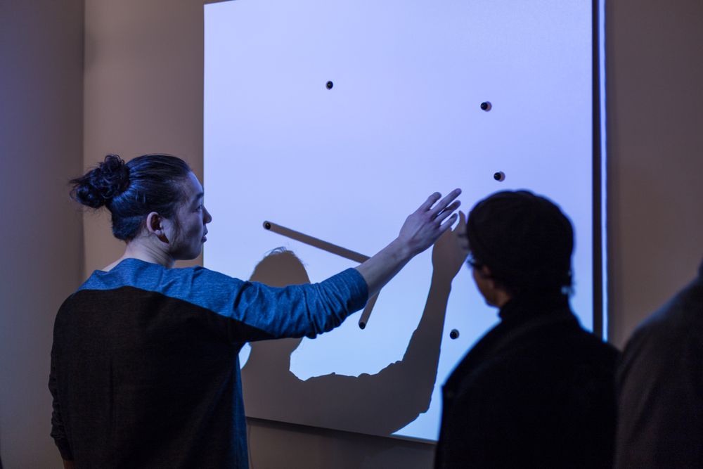 On the launch party we transformed the digital version to an installation. The guests could press physical knobs to connect the dots and take printed version home.