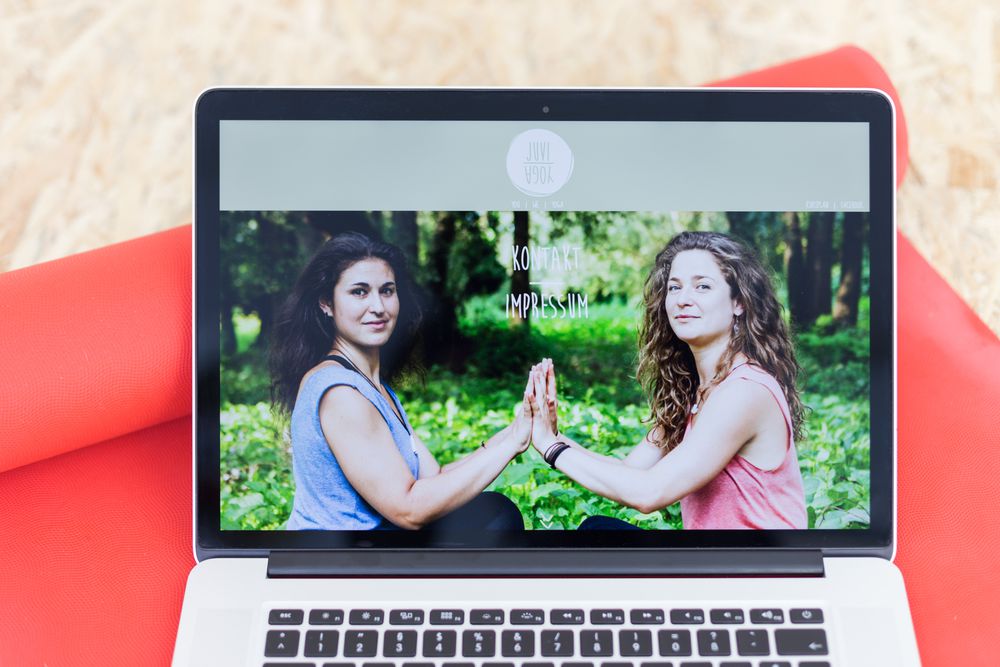 yogaschule in berlin2015 - jetztGESTALTUNGS- & KOMMUNIKATIONSKONZEPTlogo, postkarten, gestaltung website, visitenkartenJUVI YOGA ist ein Zusammenschluss von zwei Yoga-Lehrerinnen, die sowohl Einzel-, als auch Businessund Partneryoga anbieten. Der Name setzt sich aus den Namen der beiden Gründerinnen Judith und Viki zusammen.